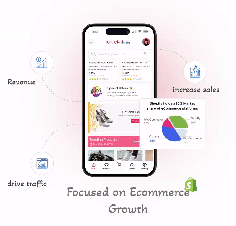As a Shopify marketing agency, we use data analytics, A/B testing, and SEO to boost conversion rates by 20%, drive targeted traffic, and increase AOV. Our comprehensive market approach and UX optimizations grow organic traffic, reduce cart abandonment, and improve ROI by 40%.